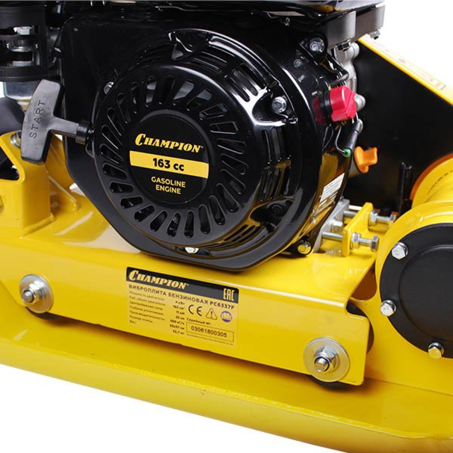 Виброплита CHAMPION PC6337F, работающая на бензине, предназначена для уплотнительных работ с гравием разной фракции, песком, тротуарной плиткой и асфальтобетонной смесью, например, при ремонте дорог.
